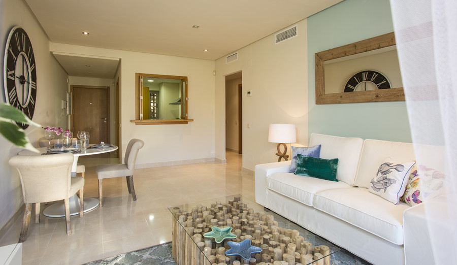 Just 300m from the beach and surrounded by extensive tropical gardens and swimming pools, the apartments all feature fully fitted and equipped kitchens, hydromassage baths, bedrooms with fitted wardrobes and window shutters, hot and cold air conditioning, porcelain ceramic floors and private terraces to enjoy the Mediterranean climate.