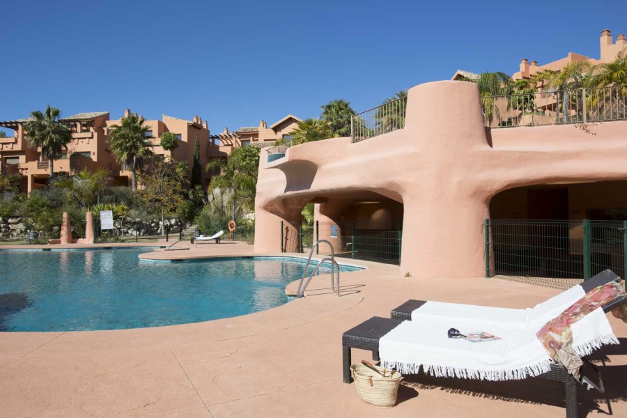 Located in a tranquil setting adjacent to a nine hole golf course the development is 300 metres from the nearest long sandy beaches and chiringuitos with shops, restaurants and amenities also nearby. A number of golf courses including the renowned the three 18 hole course Los Flamingos Golf are just a short distance from the development as is Selwo Aventura wildlife park. A mere ten minutes drive in either direction along the coast will take you to the traditional towns of Estepona or San Pedro de Alcantara.
