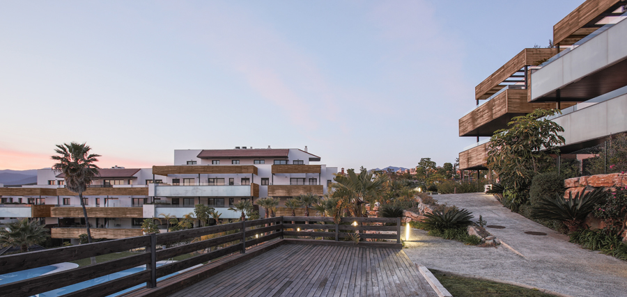 Surrounded by three of the FINEST GOLF COURSES on the Costa del Sol (Flamingos, Alferini & Tramores), the EXCLUSIVE residential development offers breathtaking PANORAMIC VIEWS of the golf course, sea and surrounding mountains from the gardens and properties.