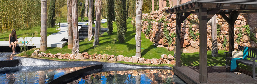 The mature landscaped gardens feature FOUR COMMUNAL SWIMMING POOLS (two adults and two children’s) and changing rooms, SOLARIUMS and ornamental stream with QUIET SEATING AREAS to relax.