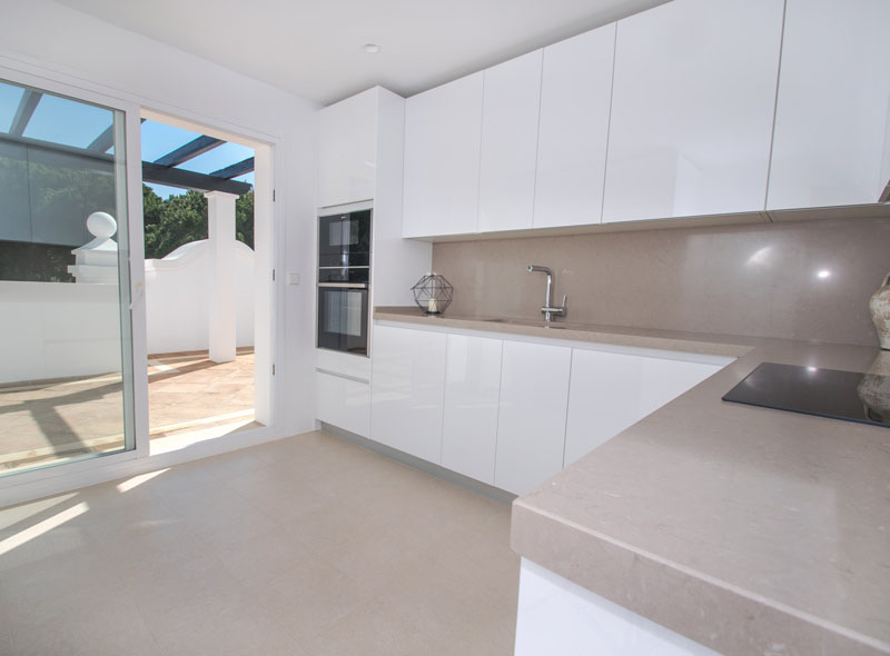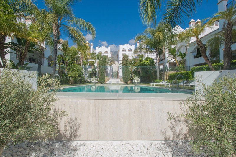 The properties ranging from 113m2 to 203m2, some with private terraces of up to 200m2, have been COMPLETELY REFURBISHED to modern standards with excellent quality finishings, marble flooring, OPEN PLAN LIVING areas with fireplaces, fully fitted kitchens, en-suite bathrooms, hot and cold air conditioning, fitted wardrobes and SPACIOUS TERRACES with spectacular SEA and MOUNTAIN VIEWS. The renovated communal and pool areas are surrounded by mature lush sub-tropical landscaped gardens.