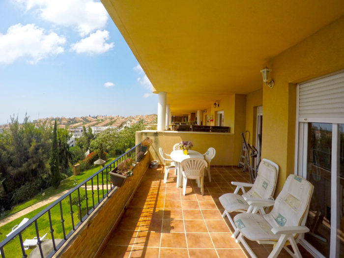 Set amongst landscaped sub-tropical gardens, the popular gated apartment complex features two large communal SWIMMING POOLS and TENNIS COURT with views across Riviera del Sol toward the Mediterranean Sea.